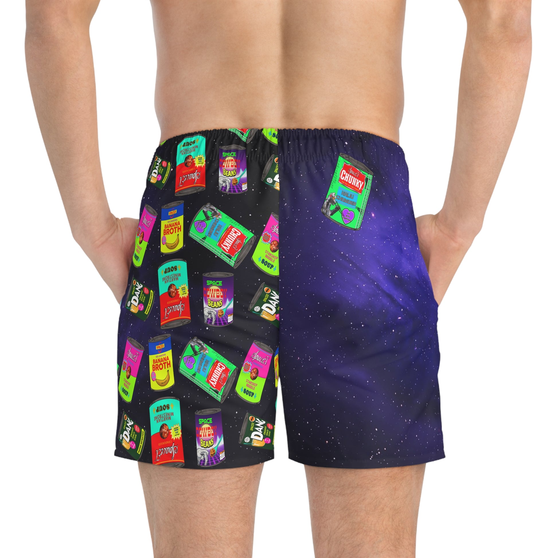 Nothing can CAN the summer heat like a dive into the water at Boca Chica Beach - or into the Starbase pool. These Galactic Soup swim trunks are here to take on your most out of this world fun. With custom design by Mollee Noren & vivid colors, these trunks help you explore new worlds in style.