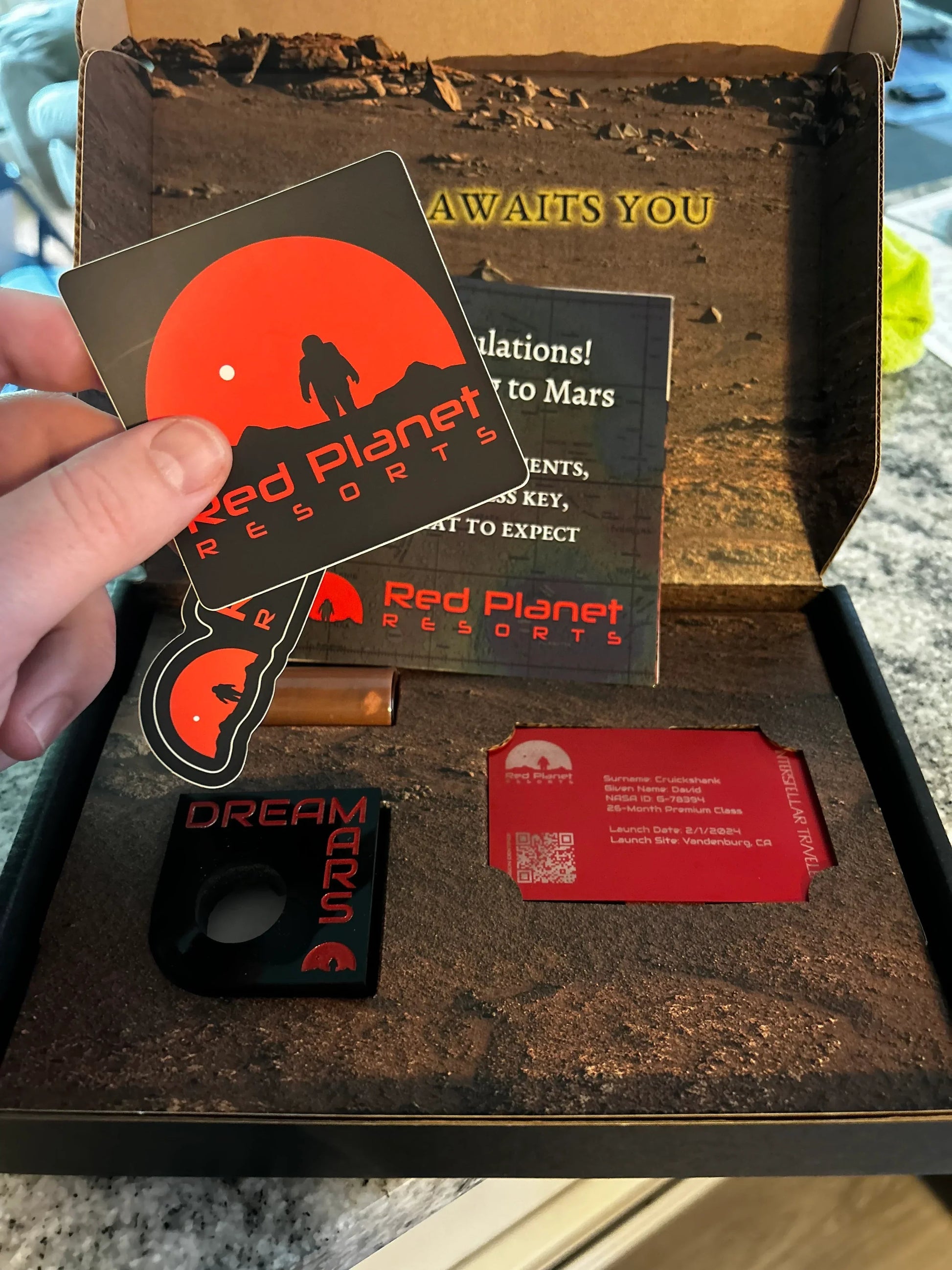 Your adventure begins as soon as you scan the QR code on your engraved metal ticket. From that point forward, anytime you scan your ticket for the next 26-months, your Martian adventure becomes a little bit more real.